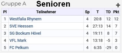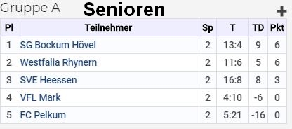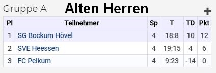 | Senioren Gruppe A | Senioren Gruppe B | Alte Herren Gruppe A | Alte Herren Gruppe B |