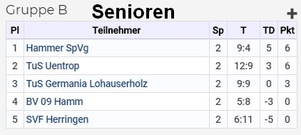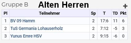 | 19.30 Uhr | AH | BV 09 Hamm | - | Yunus Emre HSV | 9:5 | |||