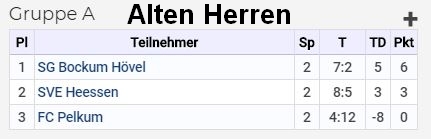 | 18.00 Uhr | AH | SVE Heessen | - | 1. FC Pelkum | 7:3 | |||
