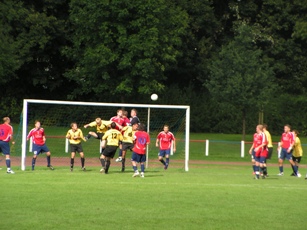 Landesliga: VfK Weddinghofen : SVE Heessen 2:0 (0:0) Der VfK Weddinghofen ist dem Sprung in die Westfalenliga wieder ein Stück näher gekommen. Sie selbst steuerten heute Nachmittag einen 2:0 Erfolg über den SVE Heessen bei und profitierten von der Niederlage des bisherigen Spitzenreiters SC Neheim. Bis auf einen Punkt ist die Rieske-Truppe nun an Tabellenführer SV Hövelhof herangerückt. Volker Rieske hatte im Vorfeld von seiner Mannschaft 9 Punkte aus den restlichen 3 Partien gefordert. Der SVE Heessen wollte dem VfK das Leben aber so schwer wie möglich machen. Aus einer verstärkten Defensive heraus versuchten die Gäste ihr Glück um mit schnell vorgetragenen Kontern zum Erfolg zu kommen. Dabei mussten sie kurzfristig auf Ali Karaman verzichten, der mit einem grippalen Infekt das Bett hüten musste. Demzufolge lief das Konterspiel der Heessener lange Zeit nicht präzise genug um die VfKler in Bedrängnis zu bringen. Einzige Ausnahme bildete Andre Charts Linksschuss aus der 17. Minute, den aber Keeper Parosso abwehren konnte. Den Gastgebern hingegen fiel aber auch nicht allzu viel Großartiges ein. Lange hohe Bälle in den Heessener Strafraum waren kein probates Mittel. Und wenn sie einmal gefährlich wurden, dann war Heessens Keeper Cüneyt Tüten zur Stelle. Tüten war es auch, der Volker Messner schon kurz vor Spielbeginn Magenschmerzen bereitete. Beim Zurückgehen verdrehte sich der Torwart den Fuß und blieb minutenlang verletzt liegen, konnte aber zum Glück dennoch mitspielen. Nach dem Wechsel dauerte es 10 Minuten, dann zappelte das Leder zum erstenmal im Heessener Kasten. Andreas Berning traf für seine Farben aus halbrechter Position nachdem er von Rios mustergültig bedient worden war. Haluk Metin war es, der in der Folge den Ausgleich erzielen können, scheiterte aber aus kurzer Distanz an Parossa. Mehr hatten die Heessener an diesem Tage aber auch nicht zu bieten. Die Gäste waren zwar stets bemüht, doch fehlte ihnen vor dem Weddinghofener Tor die Durchschlagskraft. So hatten die Gastgeber die weitaus größeren Möglichkeiten zumal sie auch nun mehr Freiräume bekamen. Nach einem dieser Konter sorgte Dennis Rautert in der 76. Minute für die Vorentscheidung. In Abstaubermanier bugsierte er das Leder über die Torlinie, zuvor war Turan am Pfosten gescheitert. Danach passierte nicht mehr viel weil Weddinghofen den Vorsprung verwaltete. SVE Heessen: Tüten, A. Gümüser, Pra, Burnic (70. Saadoumi), König, Schulte, Chr. Chart (80. Düser), A. Chart, Üysal (80. Görgulü), Herfurth, Metin Tore: 1:0, 55. Berning, 2:0, 76. Rautert |