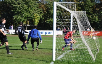 VfB Marsberg : SVE Heessen 2:2 (2:1) Es war ein gerechtes Remis im Diemelstadion zwischen dem VfB Marsberg und dem SVE Heessen. Zwar waren die Gäste aus Heessen dem Sieg am Ende näher als der Aufsteiger, dennoch war auch Volker Messner mit dem einen Punkt zufrieden. „Wir haben schwer ins Spiel gefunden und mussten Rückschläge verkraften“, so der Heessener Trainer. Mit Rückschläge meinte der Coach die beiden Gegentreffer, die die SVEler schon früh wegstecken mussten. Zunächst lies sich Tobias Danielzik im Laufduell mit Marcus Langhoff düpieren, der traf dann zu 1:0 (19.). Nur 6 Minuten später entschied Schiedsrichter Udo Schlingmann auf Strafstoß für die Marsberger. Sertac Cakici soll Ali Güllü im 16er zu Fall gebracht haben. Güllü lies sich die Chance nicht nehmen und erhöhte sicher auf 2:0. Nun musste es als Heessener Fan Angst und Bange um seine Mannschaft werden aber die Messner-Truppe zeigte Moral. Besonders wichtig war der Anschlusstreffer durch Kevin Messner in der Nachspielzeit der 1. Halbzeit. Nach dem Wechsel merkte man den Gästen an, dass sie den Nachhauseweg nicht mit leeren Händen antreten wollten. Angetrieben von Routinier Jürgen Serr und Kevin Messner kamen sie immer wieder gefährlich vor das Gehäuse des Aufsteigers. Auch am Ausgleich war Kevin Messner beteiligt, der sich nach Spielschluss ein dickes Lob von seinem Vater und Trainer einstecken durfte. Nach seinem Pass war es Mustafa Saadouni, der mit einem klugen Heber Keeper Müller überwand und für den Ausgleich sorgte (60.) Auch in der Folgezeit investierten die Gäste mehr für einen Sieg. So scheiterte Saadouni in der 76. Minute aus 18 Metern denkbar knapp und auch Mike Gerling hatte noch eine erwähnenswerte Torchance zu verzeichnen. Beinahe wären alle Bemühungen aber umsonst gewesen. Ein langer Ball segelte ungehindert durch die Heessener Abwehr und Sascha Wachsmann kam am Fünf-Meter-Raum frei an das Leder, doch sein Schuss parierte Cedric Packheiser glänzend. pk VfB Marsberg: Müller, Zahelzei (83. Conelizs), Lüdtke, Willeke, Molemans, Meyer, Nolte (69. Schemp), Wachsmann, Bender, Güllü (57. Nassery), Langhoff SVE Heessen: Packheiser, Siepmann, Danielzik, Wappler, Serr (73. Julian Menzel), Messner, Gerling, Cakici, Saadouni (87. Ludyga), Bünyamin, Isikli (46. Yerli) Tore: 1:0 (19.) Langhoff, 2:0 (25.)Güllü Foulelfmeter, 2:1 (45+3.) Messner, 2:2 (60.) Saadouni Schiedsrichter: Schlingmann (Detmold) |