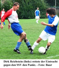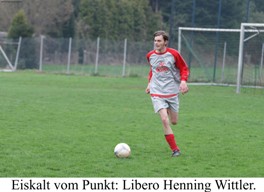 FC Pelkum II – SVE Heessen III 2:7 (1:2) Bekanntlich tut sich die dritte SVE-Mannschaft gegen Teams aus dem unteren Tabellendrittel sehr schwer. Durch unnötige Punktverluste versperrten sich die Heessener zuletzt den Sprung in die Spitzengruppe, an einen Ausbau der Tordifferenz, wie es die Konkurrenz oft und gerne tut, war nicht einmal zu denken. In Pelkum war das anders, zwar gingen die Heessener beim 7:2 (2:1)-Erfolg nur mit einem knappen Vorsprung in die Kabine, doch Einstellung und Effizienz stimmten über 90 Minuten. Vier gelben Karten für den Favoriten sind Zeugnis vom Einsatzwillen der Gäste im Selbachpark. Für die Heessener ging es gut los, denn schon nach zehn Minuten brachte Daniel Kromrei seine Farben mit einer Direktabnahme in Führung. Den langen Pass von Libero Henning Wittler hatte Andy Sendek in die Mitte geflankt. Fünf Minuten später erhöhte Sebastian Krothoff. Vorausgegangen war eine Balleroberung von Bodo Brinkötter, die Dirk Reichstein schnell in die Spitze weiterleitete. Dem FCP gelang der Anschlusstreffer zum 1:2 (25.), doch schon vor der Pause hätten Alex Tschmel und Dirk Reichstein die SVE-Führung wieder ausbauen können. Ihre Tore zählten wegen Abseits jedoch nicht. Das Verpasste holten die Gäste kurz nach dem Wechsel nach. Reichstein verwandelte einen Elfmeter nach Foul an Kromrei (51.) und Andy Sendek schlenzte die Vorlage von Freddy Oppotsch aus der Halbposition ins Netz (54.). Die Partie war entschieden. Krothoff markierte nach einer Stunde seinen zweiten Treffer nach Vorlage von Norman Schulte, ehe den Pelkumern durch einen schönen Alleingang das 2:5 gelang (69.). Alex Tschmel mit einem Lupfer über den Torhüter (73.) und Norman Schulte mit einem sehenswerten Solo (86.) sorgten für den 7:2-Endstand aus Sicht der Gäste. SVE III: Sand – Wittler – Brinkötter, Luebke (64. Lettau) – Sendek (61. Budde), Oppotsch, Reichstein, Kromrei – Schulte – Krothoff (74. Brokinkel), Tschmel |