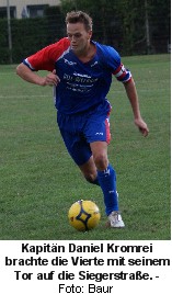 Spielzüge. Nach einem drang Daniel Kromrei von halblinks in den Strafraum ein