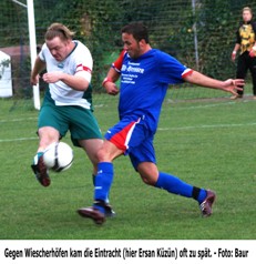 gewonnenes Kopfballduell der Wiescherhöfener. Mit der Hacke schlenzte ein